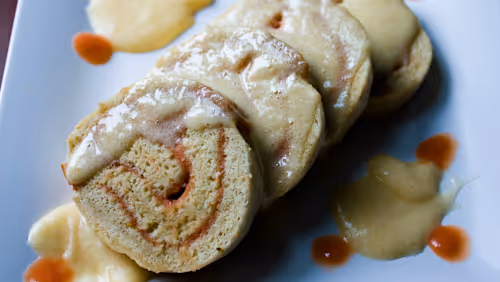 Credit: Cooked EarthThis recipe is derived from the 1986 edition of the Bahamian cookbook: Rake ‘N’ Scrape In De Kitchen. It is titled Surprise Guava Delight from the kitchen of Vernice Cooper. Enjoy!Guava Duff Ingredients:12 guavas, peeled1/2 cup sugar1 tsp cinnamon1 tsp allspice, ground4 cups flour3 tsp baking powder1 tsp salt3/4 cup shortening3/4 cup milk1 egg, beatenFresh Guava Substitutions:canned guava shellsguava jamfrozen guava pulpRum/Brandy Butter Ingredients:1 cup confectioners sugar1/4 cup butter1 tsp boiling water; dash of salt2 tbsp rum or brandy to tasteGuava Duff Directions:Peel guavas, cut in half and remove seeds. Dice the fruit and strain to remove juice. Save juice to flavour sauce if desired. Put fruit in saucepan with water to cover; add sugar, cinnamon and allspice. Simmer until fruit is soft. Combine flour, baking powder and salt. Cut in shortening. Stir in milk and egg to form a soft dough. Knead until smooth. Roll out like a jelly roll on a floured board. Place the guava pieces on the center of the dough and roll over until the dough is spiralled with guava. Seal edges carefully. Wrap dough in a cotton or linen bag, or foil and parchment paper, tie the top securely and put into a large pot of boiling water for 1 hour or more if necessary to set the duff.Rum/Brandy Butter Directions:Cream butter until soft but not melted. Beat confectioners sugar in gradually. Add boiling water, salt and rum or brandy. Beat until smooth and fluffy.Serving Suggestions:Cut the guava duff loaf into one inch wide slices and dollop a tablespoon of the rum/brandy butter over top to melt down and soak into the steamed, sweet duff. Ahh, delicious!